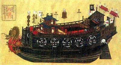 見物、耳目を驚かし侯ひしなり。翌日、大阪表へ乗り出だし、塞塞に舟を懸け置き、海上の通路を止め、堅固に仕り侯なり。「信長公記」