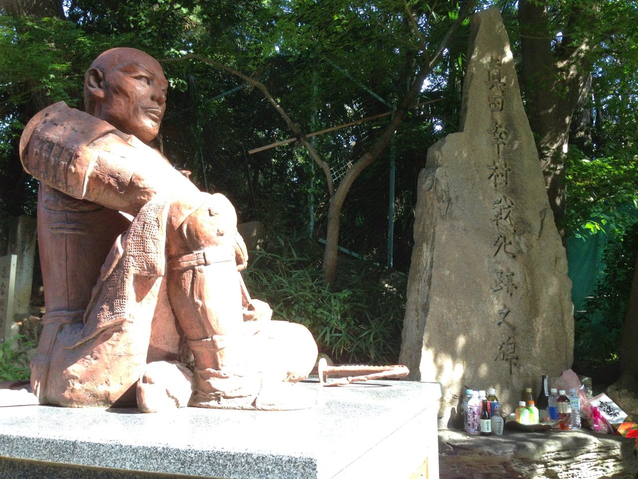 安居神社の境内には石碑と銅像が建てられ、命日である 5月 7日には、真田幸村祭が行なわれている。ちなみに、この「さなだ松」は2代目だそうじゃよ。